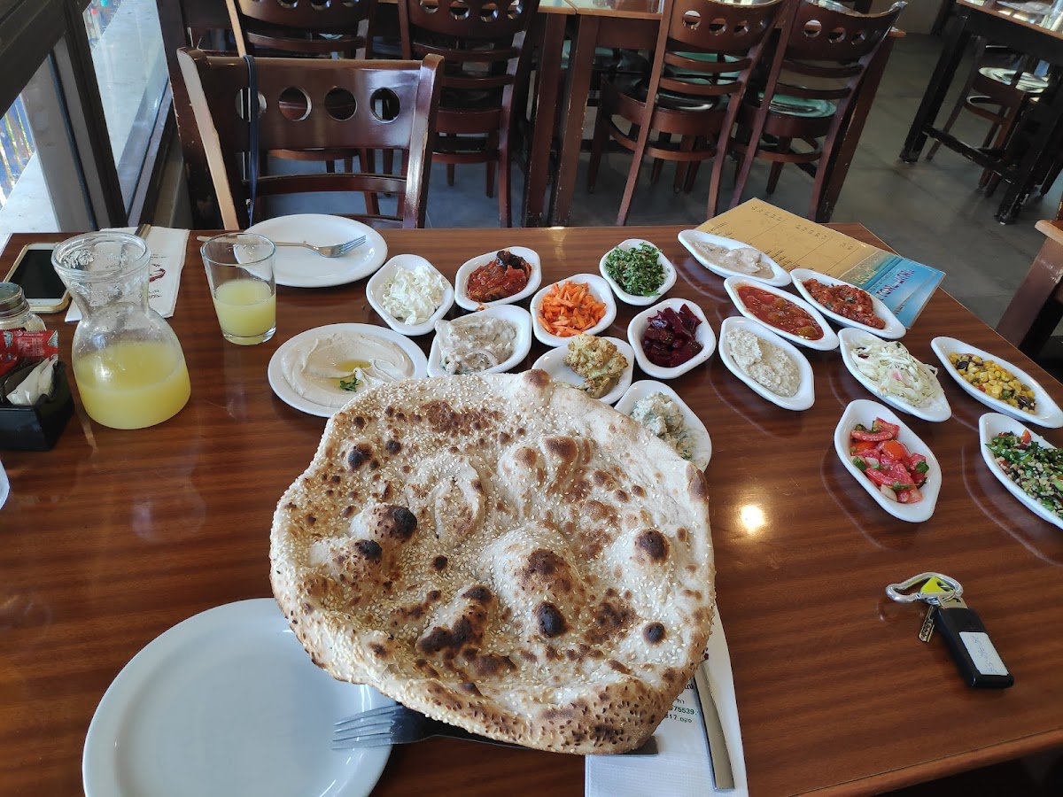 Delicious food in Jaffa, right next to the Mediterranean Sea! The staff is attentive and friendly, the service is quick, the salads and dipping sauces are fresh, and the sesame pita bread comes straight from the oven to your table.